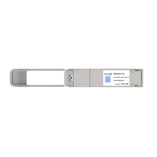 El transceptor multiplexa internamente un XLPPI 4x10G interfaz en dos 20Gb / s eléctrico canales, transmitiendo y recibiendo cada uno ópticamente sobre un simplex LC fibra usando bidireccional óptica. Este da como resultado un ancho de banda agregado de 40 Gbps en un dúplex LC cable. Este permite la reutilización del LC instalado infraestructura de cableado dúplex para 40GbE aplicación. distancias de enlace de hasta 100 m utilizando OM3 y 150m utilizando OM4 fibra óptica son apoyado. Estos Los módulos están diseñados para funcionar en multimodo. sistemas de fibra que utilizan una longitud de onda nominal de 850 nm en un extremo y 900nm en el otro extremo. El electrico interfaz utiliza un 38 contacto QSFP + tipo borde conector. La interfaz óptica utiliza un convencional LC conector duplex.